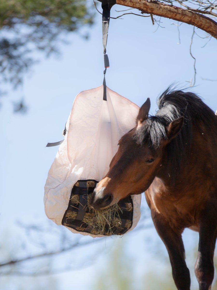 HUOM! Huomioithan turvallisuusriskin etenkin kengällisillä hevosilla, joilla kiinnijäämisen riski on suurempi kengättömiin hevosiin verrattuna. Hevosen kenkä saattaa jäädä kiinni heinäverkkoon eikä hevonen välttämättä saa itse jalkaa vapaaksi verkosta.