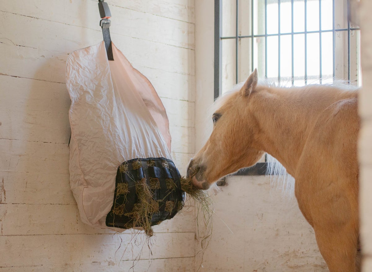 Saggyn verkko-osuus on sijoitettu tuotteen alaosaan, jotta hevonen saa kaikki heinät syötyä.